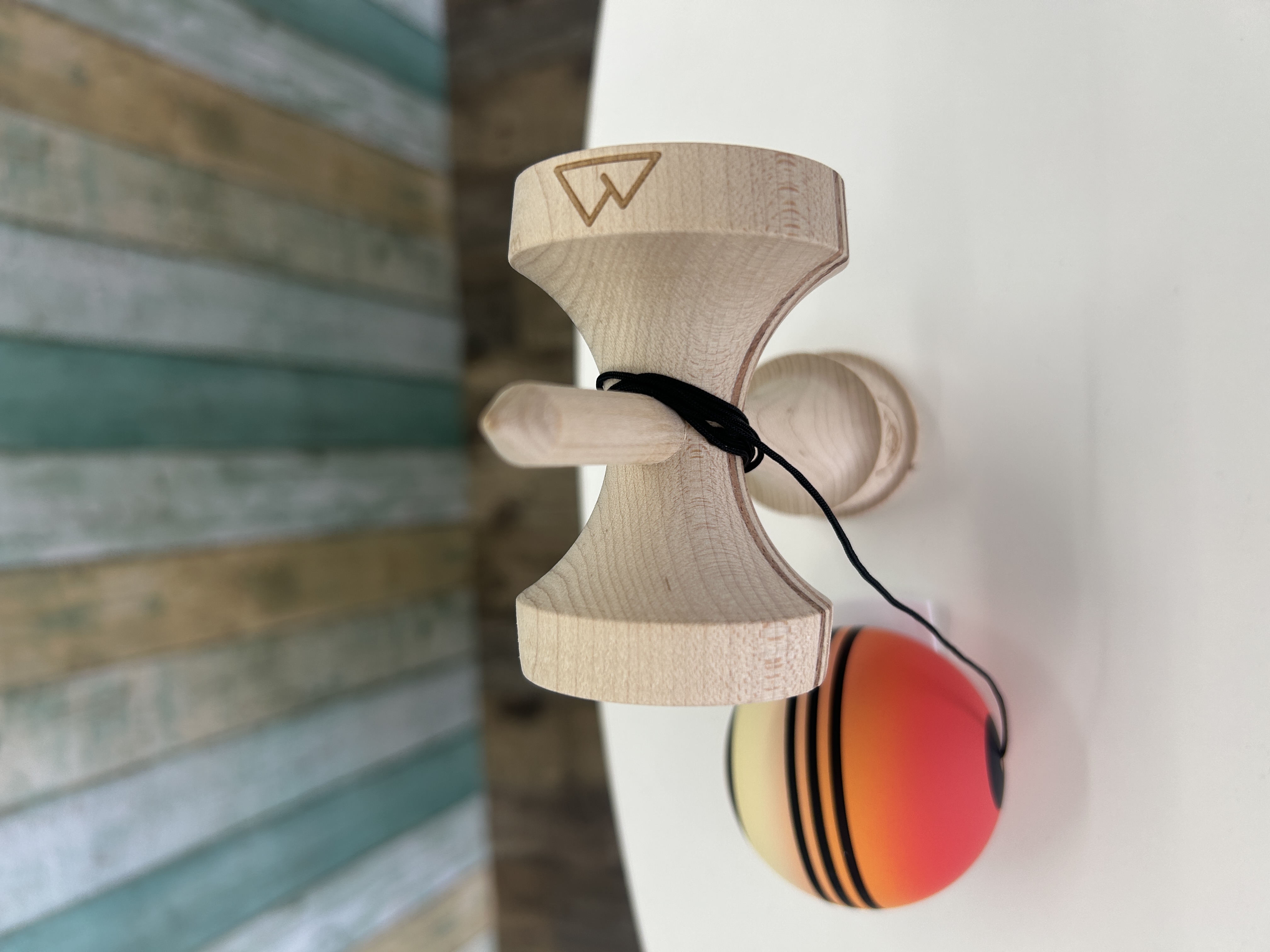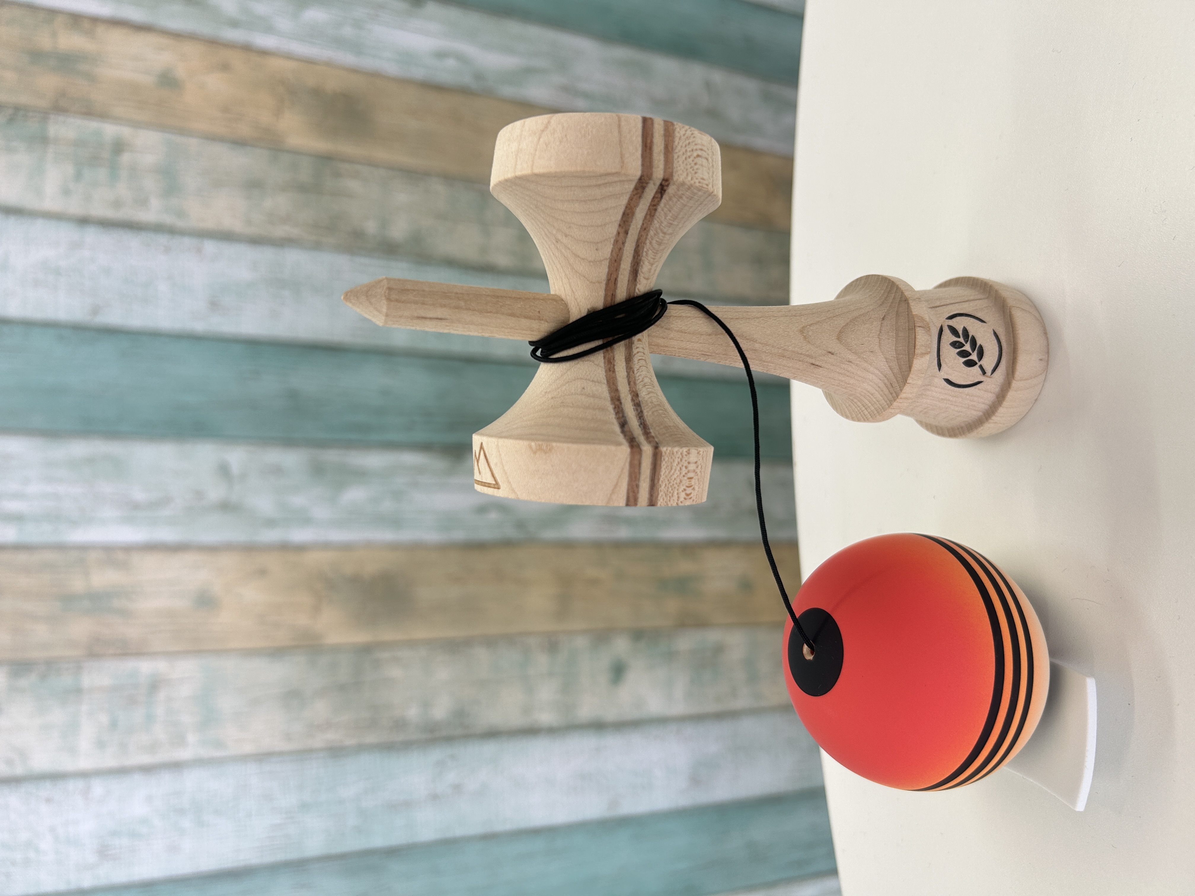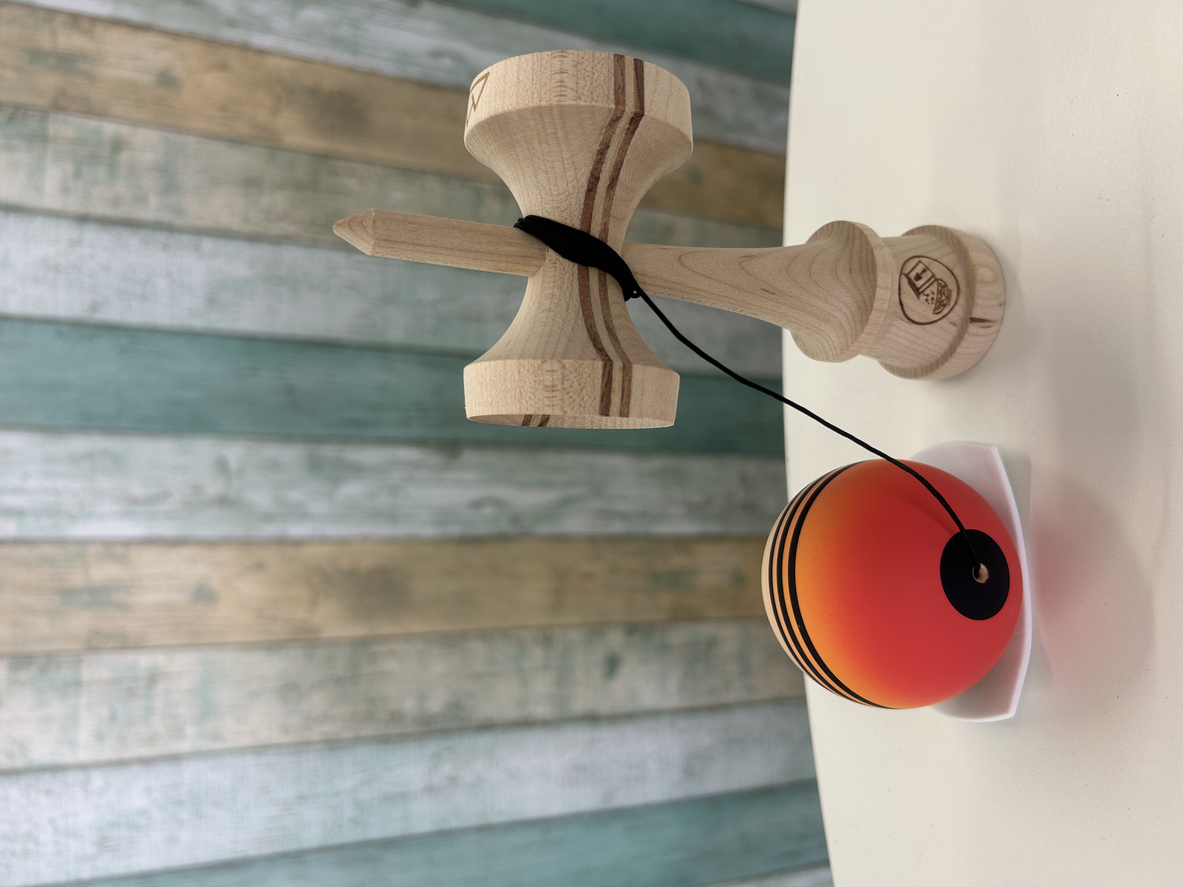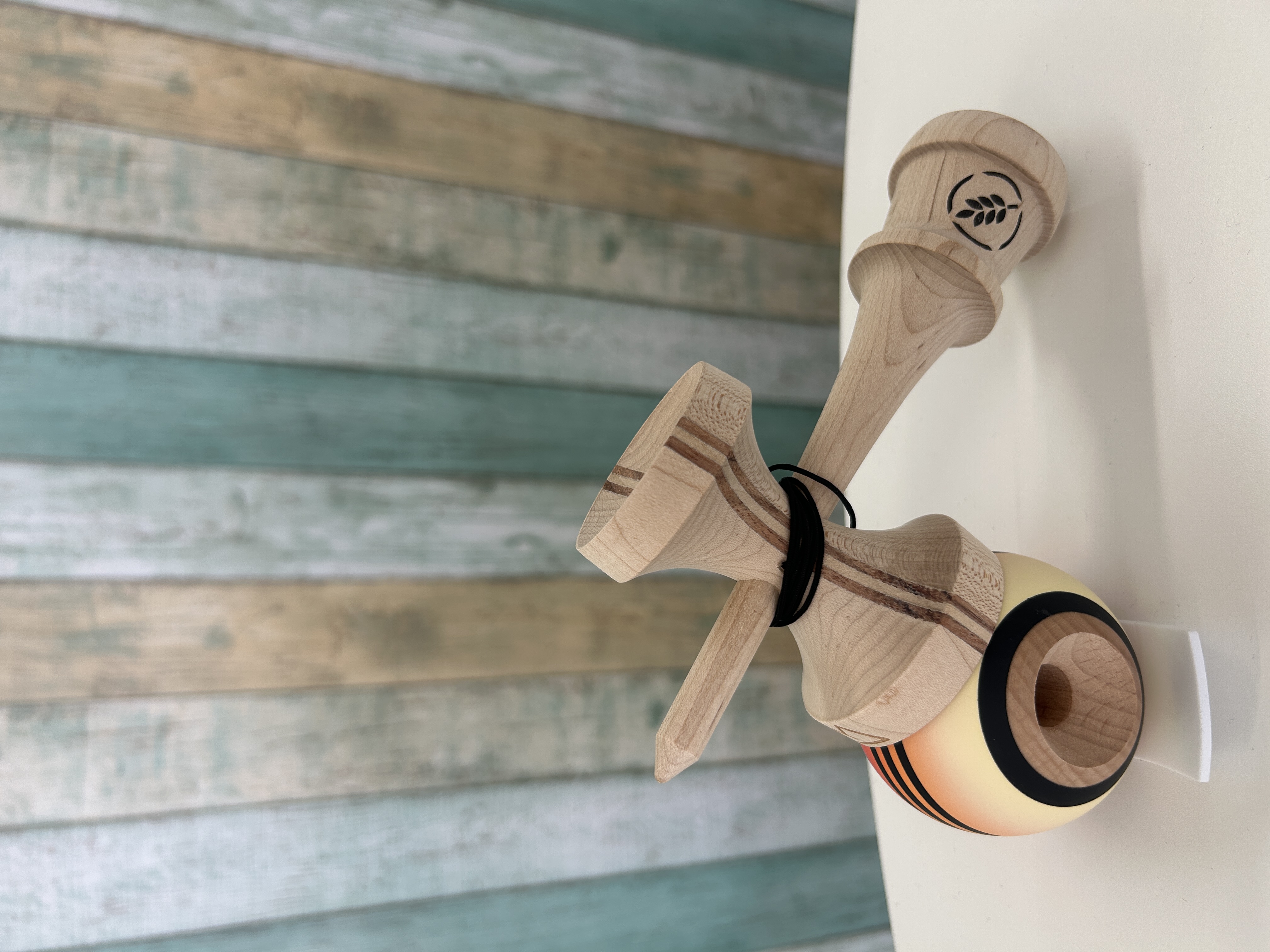 Kendama World Cupの規定で全長175mmまで許可されていますが、私たちの結論は「大きければ良いとは限らない」ということ。重心・バランス・操作性を再設計し、ルーナー、スリンガー、けんフリップ、ストールまで幅広いトリックで安定する形を追求。そうして生まれたのがRethink(リシンク)です。必要な箇所は意図的に大きく、要点はあえて小さく——“考え抜かれた”設計です。