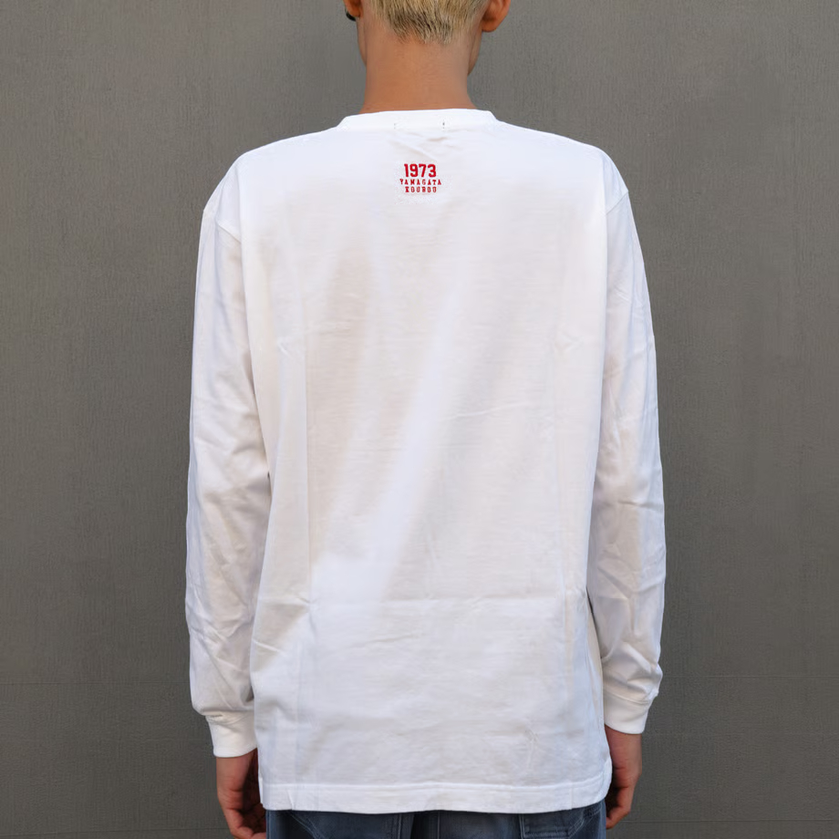 大空と430コラボのロングスリーブTシャツです。「OZORA ORIGINAL」と「1973 YAMAGATA KOUBOU」の刺繍が入っております。材質とサイズは下記の通りです。